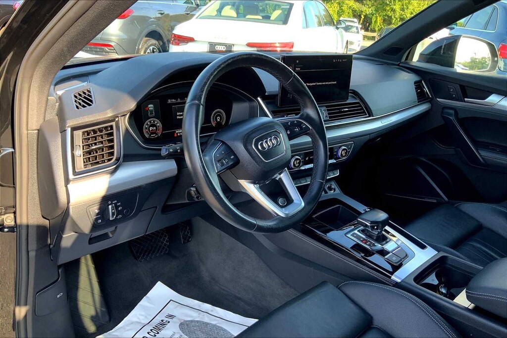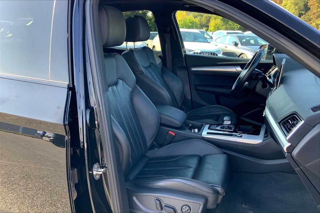 Non-Smoker vehicle, Leather Seats, Sunroof, Panoramic Roof, All Wheel Drive, Power Liftgate Audi S line Premium Plus with Mythos Black Metallic exterior and Black interior features a 4 Cylinder Engine with 261 HP at 5000 RPM*.