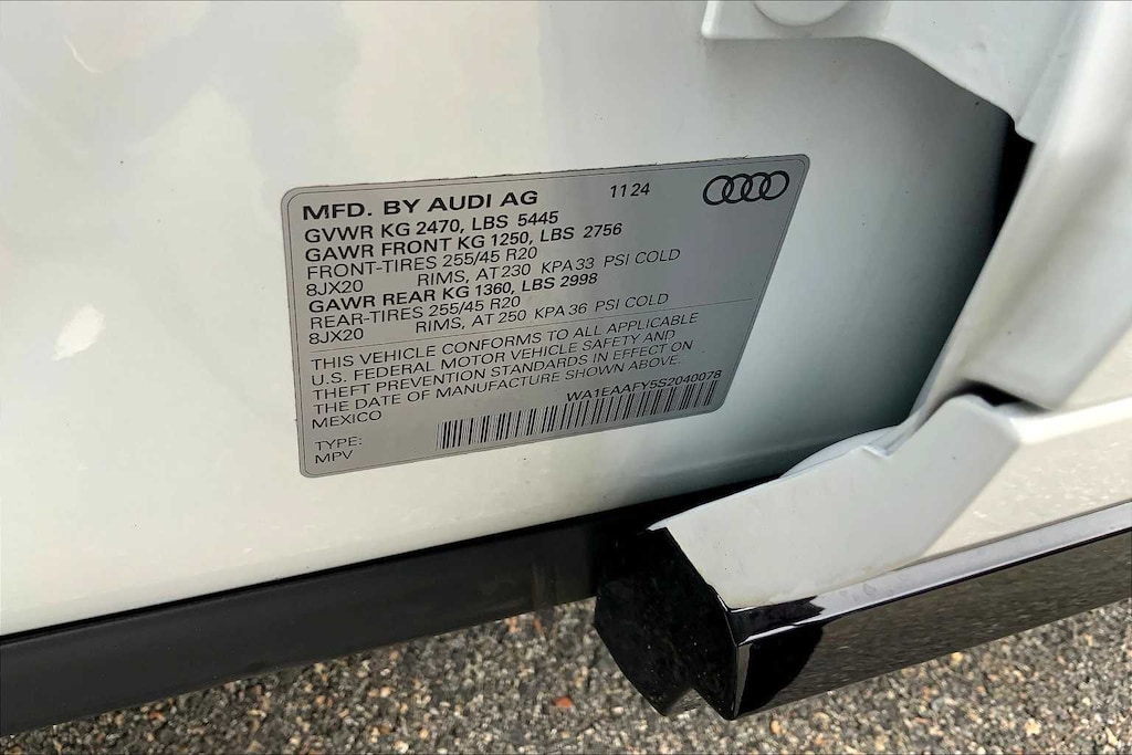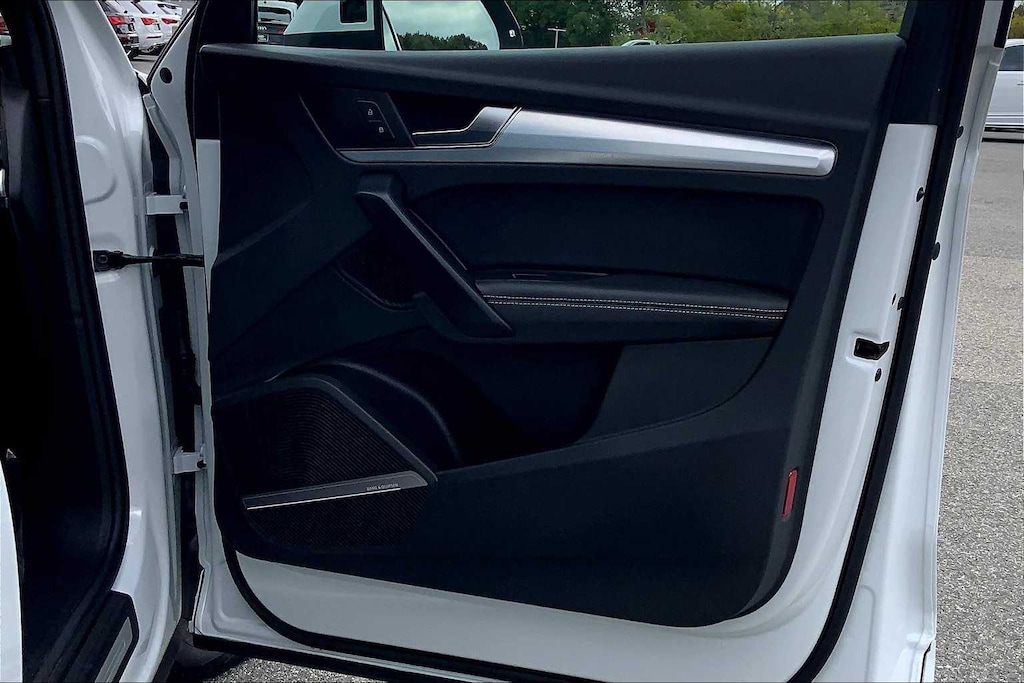 PREMIUM PLUS PACKAGE: SiriusXM w/360L, 3-month platinum plan trial subscription, Bang & Olufsen 3D Sound System, Top View Camera System, Power Adjustable Steering Column, LED Interior Lighting Plus Package, inlay illumination and color options, Power Folding Auto-Dim Exterior Mirrors w/Memory, Driver Seat Memory, Audi Virtual Cockpit Plus, Traffic Sign Recognition, Leatherette Covered Center Console & Door Armrests, BLACK OPTIC PLUS PACKAGE: Red Brake Calipers, Black Headliner, Aluminum Satellite Silver Inlays, Black Roof Rails, Black Audi Rings & Model Badge, High-Gloss Rear Diffusor/Front Spoiler/Air Intakes, Wheels: 20 5-Arm-Falx Design Bi-Color Finish, Tires: 255/45R20 101H AS, Black Exterior Trim, Perforated Leather Steering Wheel w/S Badge, WARM WEATHER PACKAGE: Ventilated Front Seats, Manual Rear Side Window Shades, GLACIER WHITE METALLIC, AUDI BEAM-RINGS: lower door trim LED light displaying Audi logo (4 rings), Front doors only.