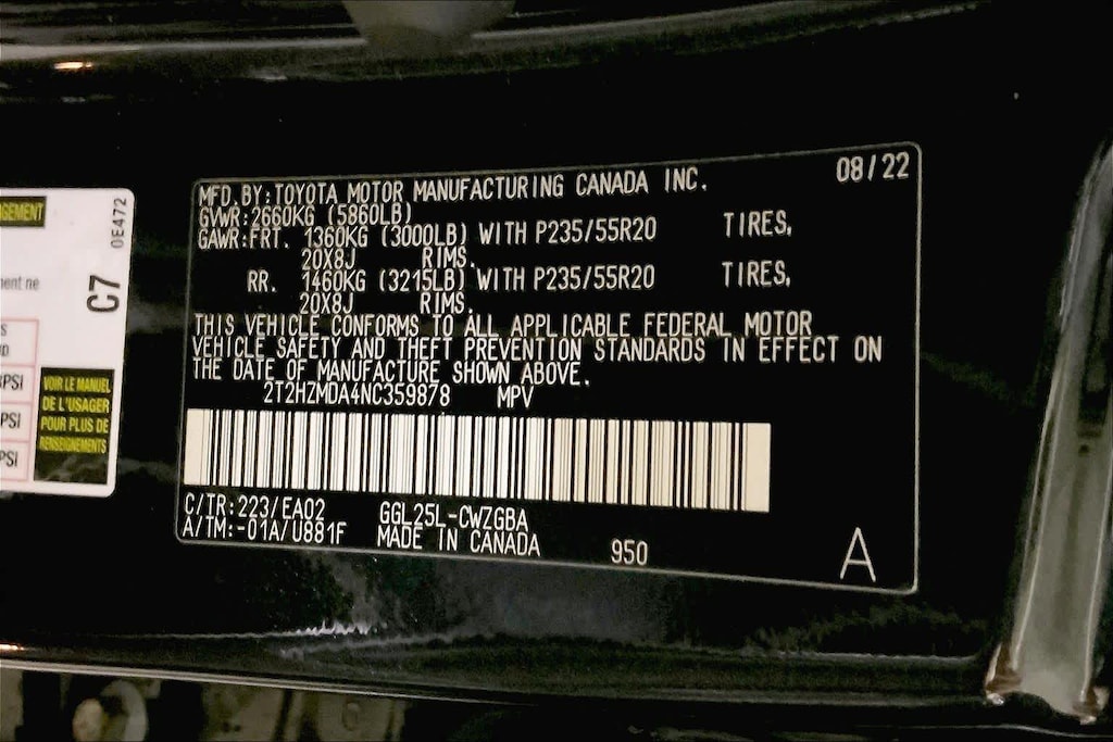 • Rear tires: 235/55VR20.0
