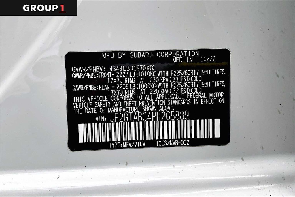 • This Vehicle is Subaru OEM Certified