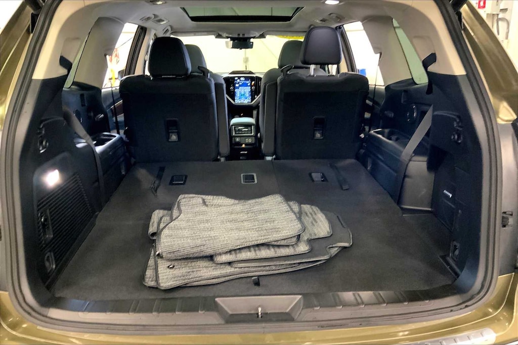 Subaru Certified. EPA 25 MPG Hwy/19 MPG City! Touring trim. Heated Leather Seats, Third Row Seat, Nav System, Moonroof, Turbo Charged Engine, Panoramic Roof, Aluminum Wheels, AUTUMN GREEN METALLIC BODY SIDE MOLDI... Quad Bucket Seats
