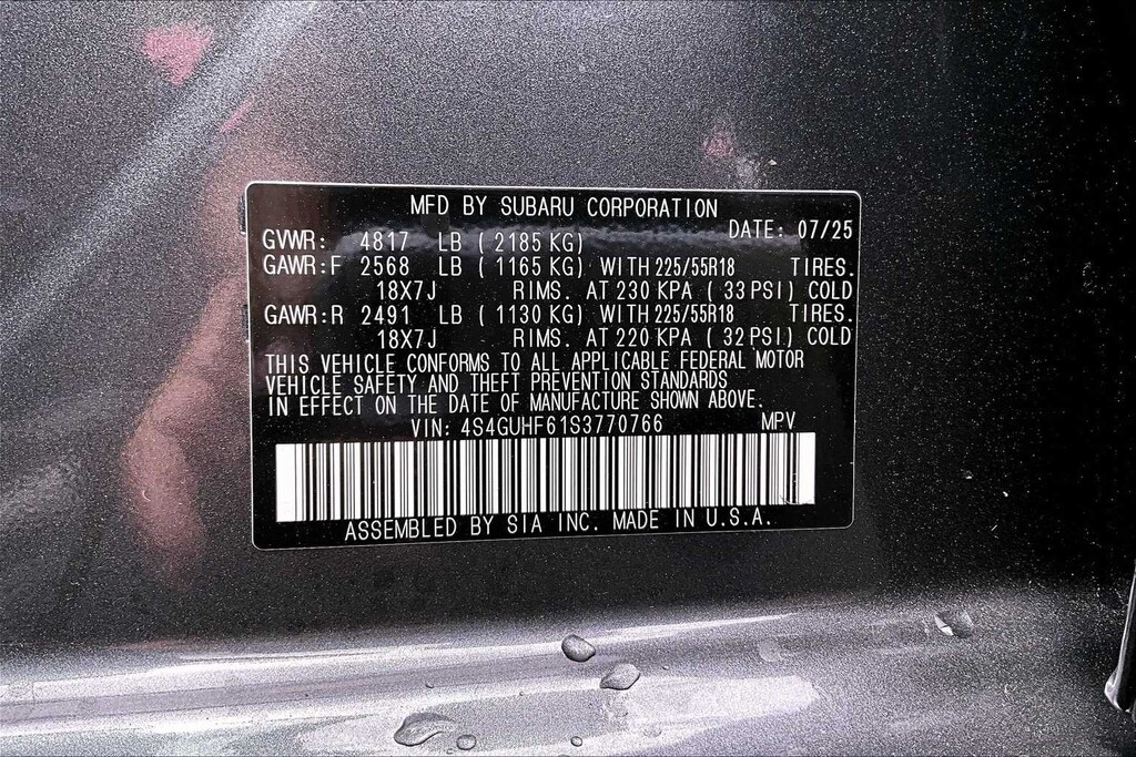 • Front tires: 225/55VR18.0