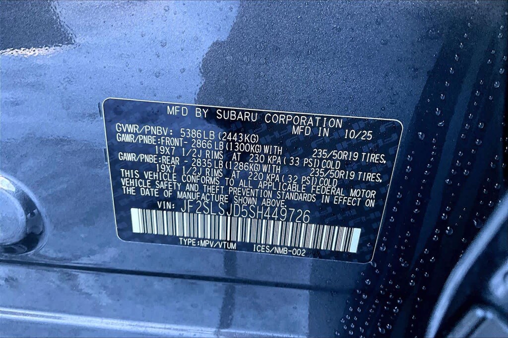 • Tracker system: MySubaru Security (6-month free trial included)