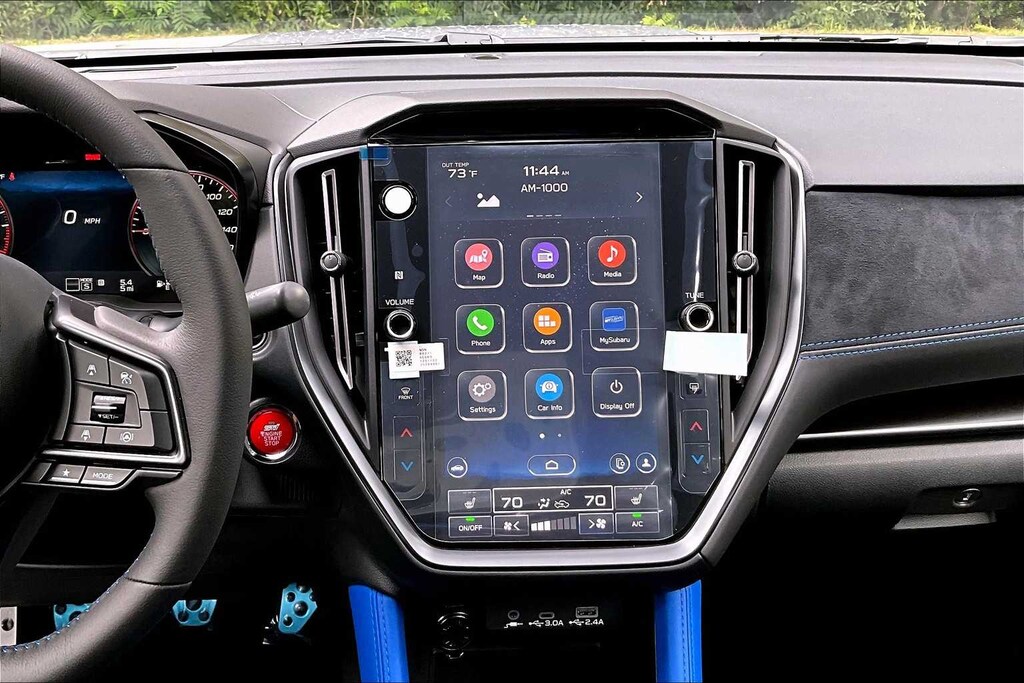 The HVAC system has its own quirks. It has a thermostat so you dial in the temperature you want. This system has been available since 1990 to my certain knowledge, but it’s an example of “why-tech” rather than “high tech” (with apologies to Road & Track, which produced an article with that title). If you get into the WRX and it’s below freezing outside, you’ll discover quickly that the thermostat’s lowest setting is 60. That results in hot air pouring out of the heater. You then have to pull over and take off your outer layer, or turn the heater off. There’s no analog lever you can open just slightly so you’re still comfortable in your winter clothes. Air conditioning seems to work better.