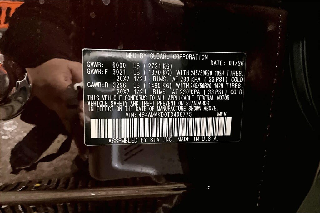 • Front tires: 245/50HR20.0