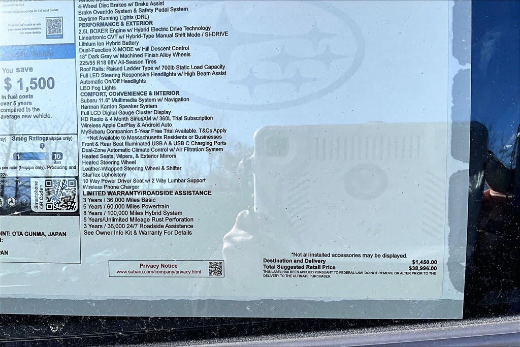 • Smart device integration: MySubaru/Apple CarPlay/Android Auto