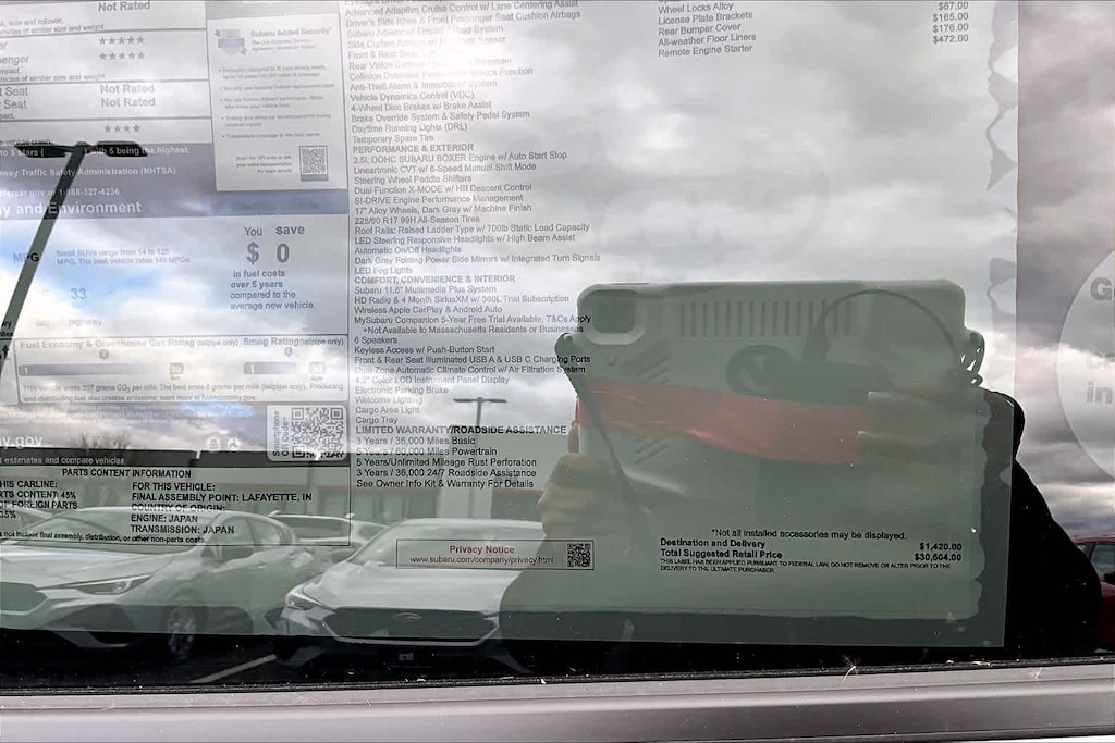 • Smart device integration: MySubaru/Apple CarPlay/Android Auto