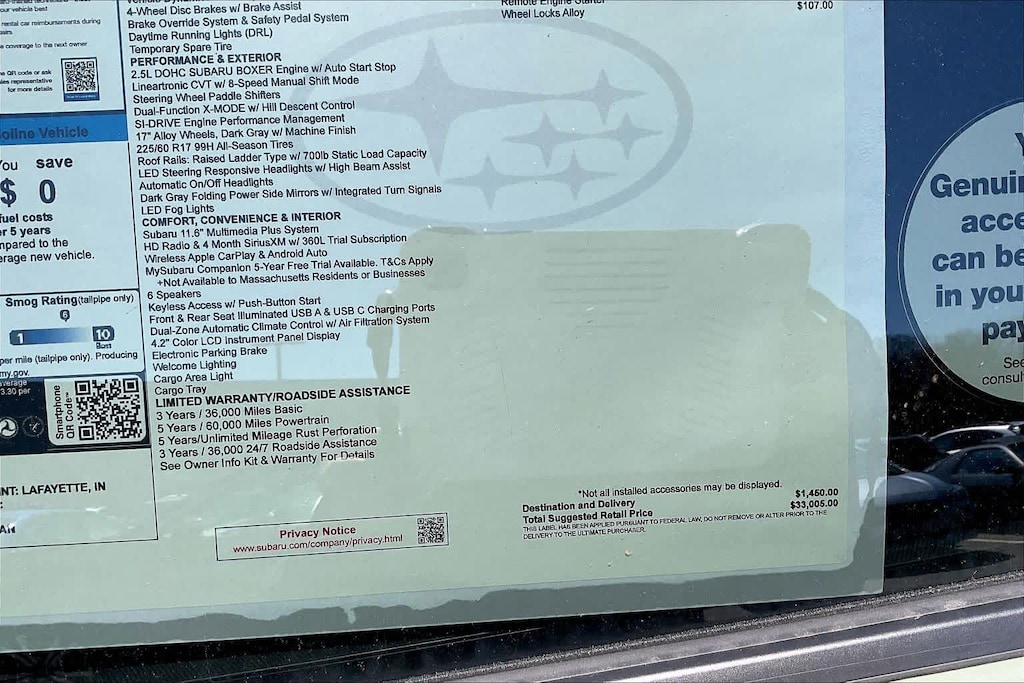 • Smart device integration: MySubaru/Apple CarPlay/Android Auto