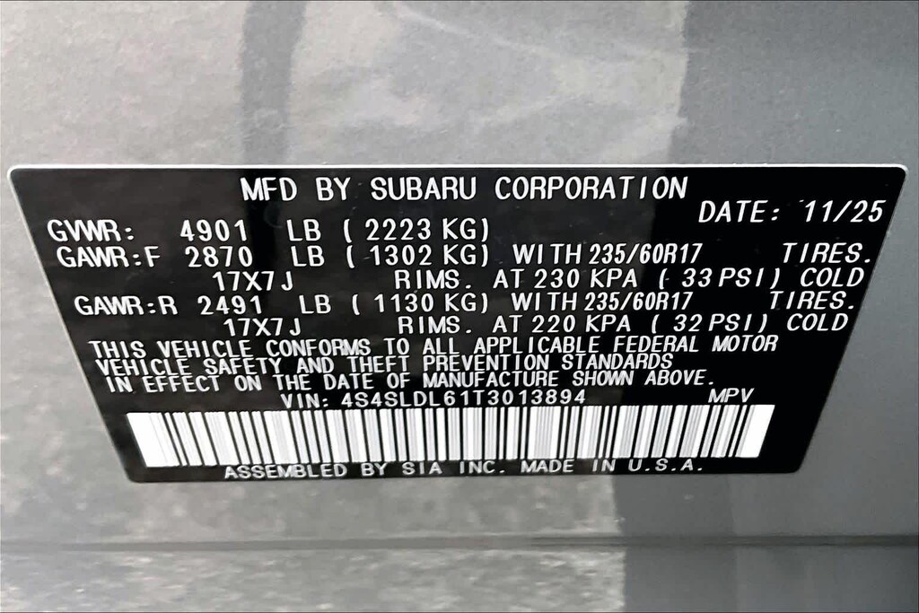 • Rear tires: 235/60TR17.0