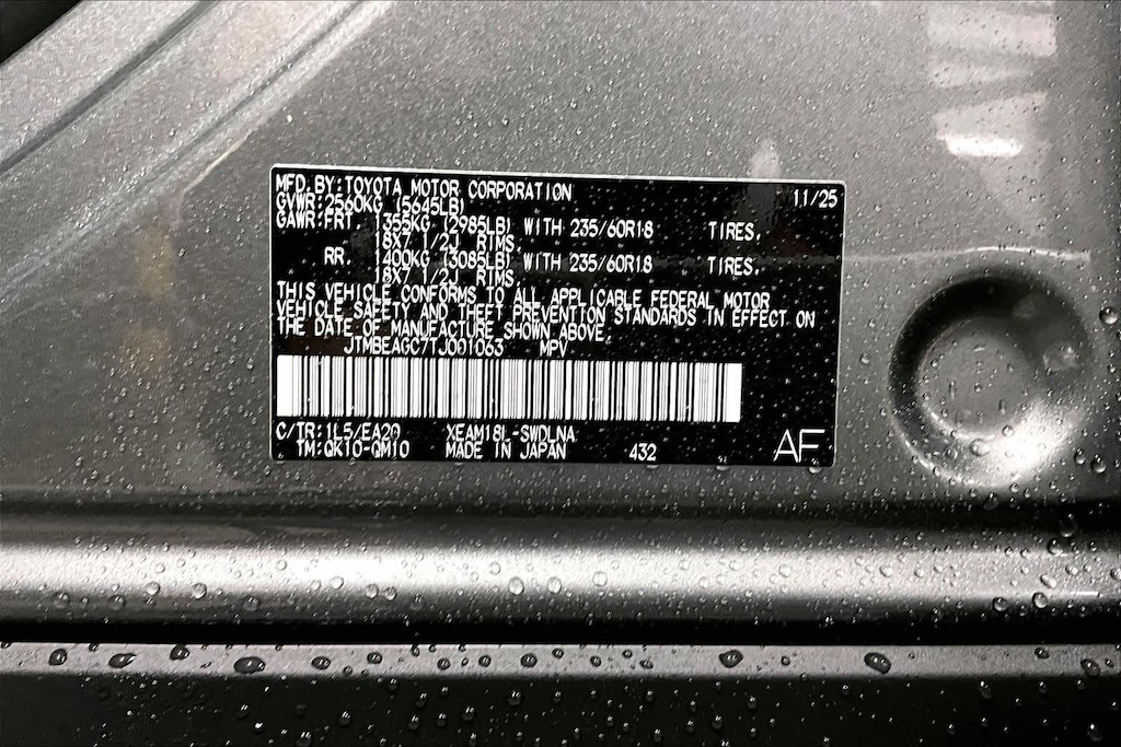 • Rear tires: 235/60VR18.0