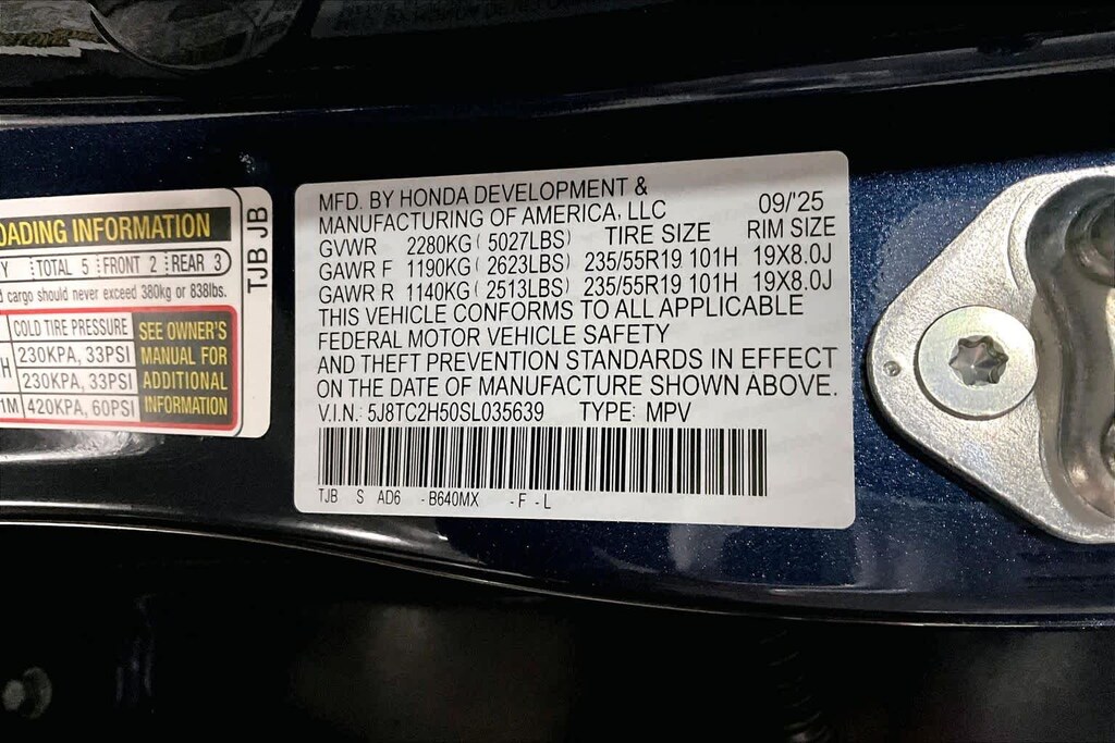 • Rear tires: 235/55HR19.0