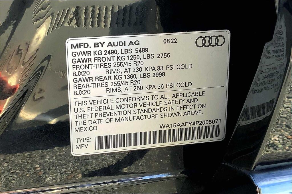 PREMIUM PLUS PACKAGE: Bang & Olufsen Sound System w/3D Sound, Top View Camera System, Power Adjustable Steering Column, Traffic Jam Assist, Hands-On Detection Steering Wheel, Audi Virtual Cockpit Plus, Driver Seat Memory, SiriusXM w/360L, 3-month platinum plan trial subscription, Heated Steering Wheel, Audi Advanced Key, keyless engine start/stop and entry - doors and trunk, Auto-Dimming Power Folding Exterior Mirrors, Leatherette Covered Center Console & Door Armrests, Audi Active Lane Assist, NAVIGATION PACKAGE: MMI Navigation Plus, Audi Connect PLUS, 6-month trial subscription, BLACK OPTIC PACKAGE: Black Exterior Trim, Wheels: 20 5-Arm Cutter Design, Bi-Color Finish, Tires: 20 AS, MYTHOS BLACK METALLIC.