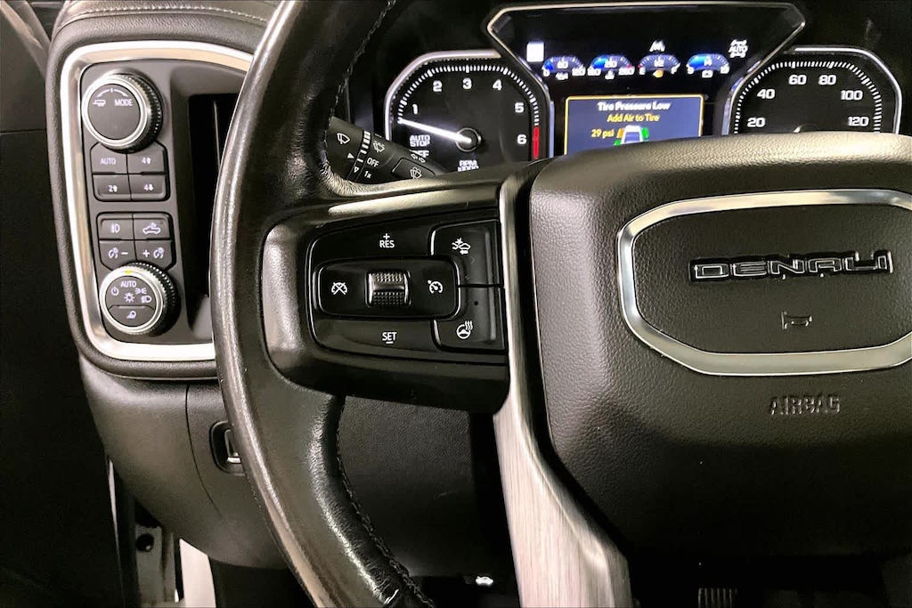 DENALI ULTIMATE PACKAGE includes (CWM) Technology Package, (PDJ) Driver Alert Package II, (CF5) sunroof, (BRS) GMC MultiPro Power Steps, (SFE) wheel locks, LPO and (SMF) 22 multi-dimensional polished aluminum wheels, ENGINE, 6.2L ECOTEC3 V8 (420 hp [313 kW] @ 5600 rpm, 460 lb-ft of torque [624 Nm] @ 4100 rpm); featuring all-new Dynamic Fuel Management that enables the engine to operate in 17 different patterns between 2 and 8 cylinders, depending on demand, to optimize power delivery and efficiency, TECHNOLOGY PACKAGE includes (UVS) HD Surround Vision, (DRZ) Rear Camera Mirror, (UVN) Bed View Camera and (UV6) Multicolor 15 Diagonal Head-Up Display, DRIVER ALERT PACKAGE II includes (UEU) Forward Collision Alert, (UHX) Lane Keep Assist/Lane Departure Warning, (UHY) Automatic Emergency Braking, (UKJ) Front Pedestrian Braking, (TQ5) IntelliBeam headlamps, (KSG) Adaptive Cruise Control-Camera and (UE4) Following Distance Indicator, AUDIO SYSTEM, PREMIUM GMC INFOTAINMENT SYSTEM WITH NAVIGATION AND 8 DIAGONAL COLOR TOUCH-SCREEN, INCLUDES MULTI-TOUCH DISPLAY, AM/FM STEREO Bluetooth® streaming audio for music and most phones; featuring Android Auto® and Apple CarPlay® capability for compatible phones, advanced voice recognition, in-vehicle apps, personalized profiles for infotainment and vehicle settings. Includes greater memory (Note: (PZ8) Hitch Guidance with hitch view is included with trim.) (STD), TRANSMISSION, 10-SPEED AUTOMATIC, ELECTRONICALLY CONTROLLED with overdrive and tow/haul mode. Includes Cruise Grade Braking and Powertrain Grade Braking (STD).