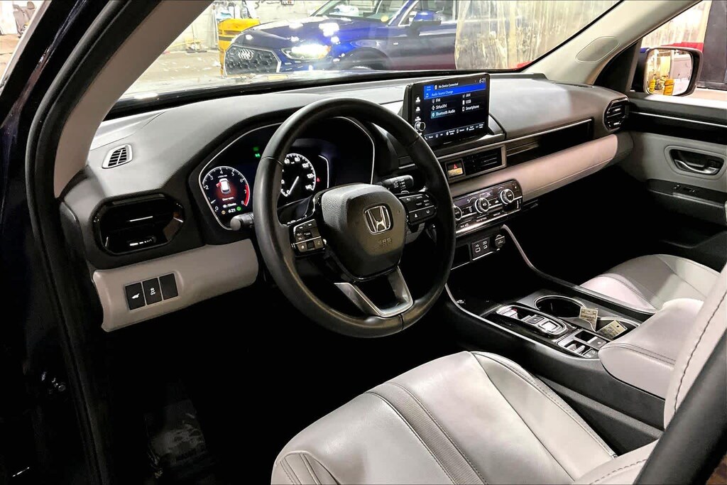 EX-L trim. CARFAX 1-Owner. FUEL EFFICIENT 25 MPG Hwy/19 MPG City! Heated Leather Seats, Third Row Seat, Rear Air, All Wheel Drive, Power Liftgate, GRAY, LEATHER SEAT TRIM, OBSIDIAN BLUE PEARL, Aluminum Wheels.