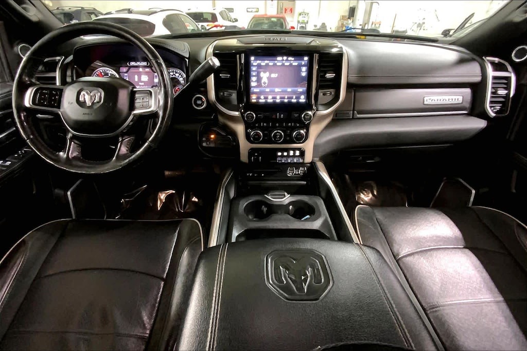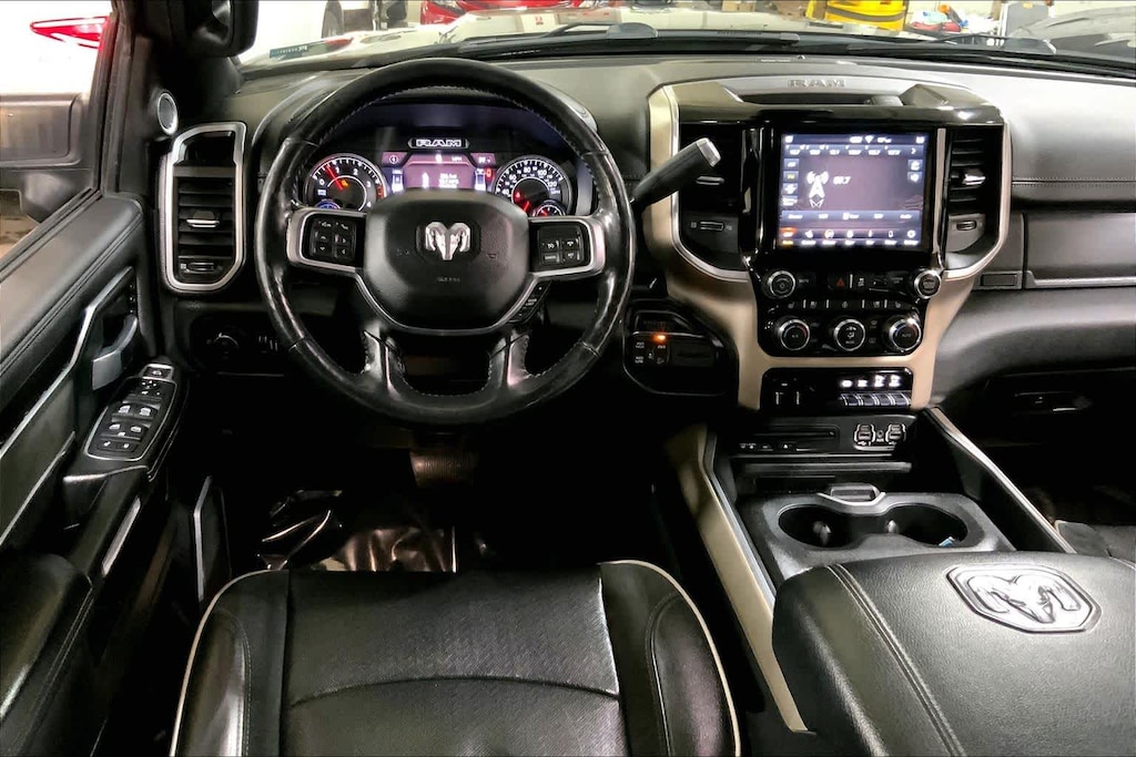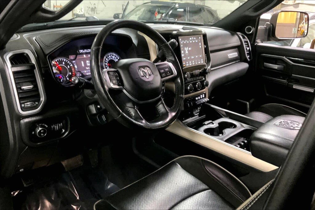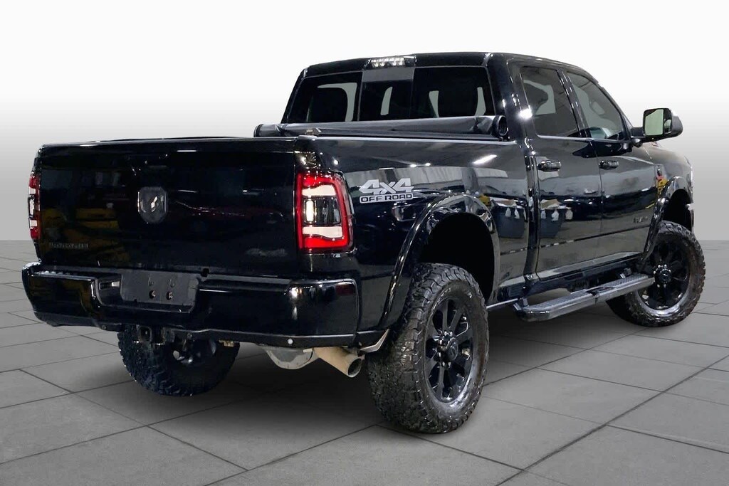 ENGINE: 6.7L I6 CUMMINS TURBO DIESEL Selective Catalytic Reduction (Urea), Dual 730 Amp Maintenance Free Batteries, Cummins Turbo Diesel Badge, Heavy Duty Engine Cooling, Supplemental Heater, RAM Active Air, 220 Amp Alternator, Tow Hooks, Diesel Exhaust Brake, Front Bumper Sight Shields, Capless Fuel Fill w/o Discriminator, LARAMIE LEVEL 2 EQUIPMENT GROUP SiriusXM Traffic Plus, Blind Spot & Cross Path Detection, Rain Sensitive Windshield Wipers, Power Adjustable Pedals w/Memory, For Details Visit DriveUconnect.com, Radio: Uconnect 4C Nav w/8.4 Display, SiriusXM Satellite Radio, GPS Navigation, Media Hub w/2 Charge Only USBs, Heated Second Row Seats, Foam Bottle Insert (Door Trim Panel), Disassociated Touchscreen Display, HD Radio, Ramcharger Wireless Charging Pad, 1-Year SiriusXM Guardian Trial, Ventilated Front Seats, SiriusXM Travel Link, Remote Tailgate Release, 17 Speaker High Performance Audio, Auto High Beam Headlamp Control, Single Disc Remote CD Player, 2nd Row In Floor Storage Bins, Radio/Driver Seat/Mirrors/Pedals Memory, BLACK APPEARANCE PACKAGE Mirror-Mounted Aux Reverse Lamps, Black Ram Head Tailgate Badge, Wheels: 20 x 8.0 Black Painted Aluminum, Black Wheel Center Hub, Black Headlamp Bezels, Body Color Door Handles, Painted Front Bumper, Painted Rear Bumper, Tires: LT285/60R20E OWL On/Off Road, Black Exterior Truck Badging, Exterior Mirrors w/Memory, Gloss Black Grille Billets/Accents, Body Color Grille Surround, Black Interior Accents, Black Exterior Mirrors, Black Tail Lamp Bezels, Power Black Tow Mirrors w/Convex Spotter & Memory, Power Adjustable Convex Aux Mirrors, TOWING TECHNOLOGY GROUP CTR Stop Lamp w/Cargo View Camera, Surround View Camera System, Blind Spot & Cross Path Detection, Trailer Reverse Guidance, PAINTED FLAT CAB-LENGTH SIDE STEPS, BED UTILITY GROUP: Spray In Bedliner, LED Bed Lighting, Deployable Bed Step, BLIND SPOT & CROSS PATH DETECTION Power Chrome Tow Mirrors w/Convex Spotter & Memory, Mirror-Mounted Aux Reverse Lamps, Exterior Mirrors w/Memory, Power Adjustable Convex Aux Mirrors, BLACK, LEATHER TRIMMED BUCKET SEATS Bucket Seats, High Back Seats, #1 Seat Foam Cushion, Folding Flat Load Floor Storage, Full Length Upgraded Floor Console, OFF ROAD PACKAGE: Front Performance Tuned Shock Absorbers, Tow Hooks, Off Road Decal, Transfer Case Skid Plate Shield, Hill Descent Control, Rear Performance Tuned Shock Absorbers, ANTI-SPIN DIFFERENTIAL REAR AXLE